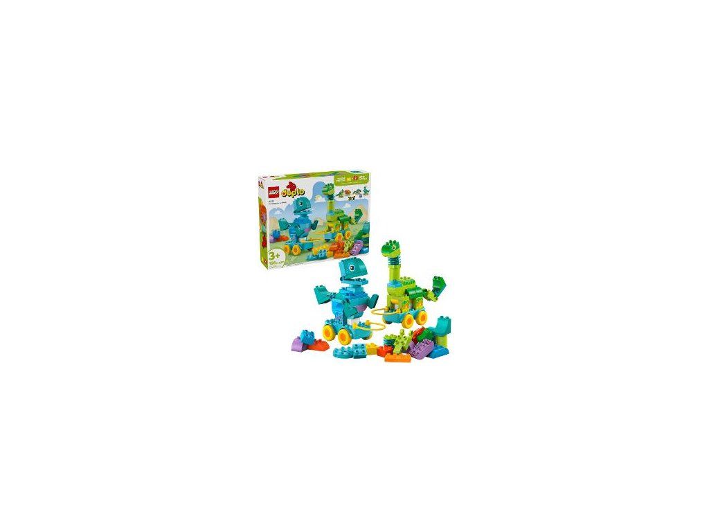 Doprajte malým deťom hry plné pestrých farieb a nekonečnej tvorivosti so stavebnicou LEGO® DUPLO® Mesto 3 v 1: Dinosaury na kolieskach