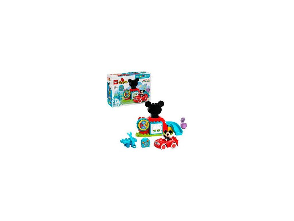 Súčasťou je figúrka LEGO® DUPLO: Myšiak Mickey, počítač Ouško a zostaviteľné verné červené auto Myšiaka Mickeyho z televízneho seriálu Mickeyho klbko od štúdia Disney Junior