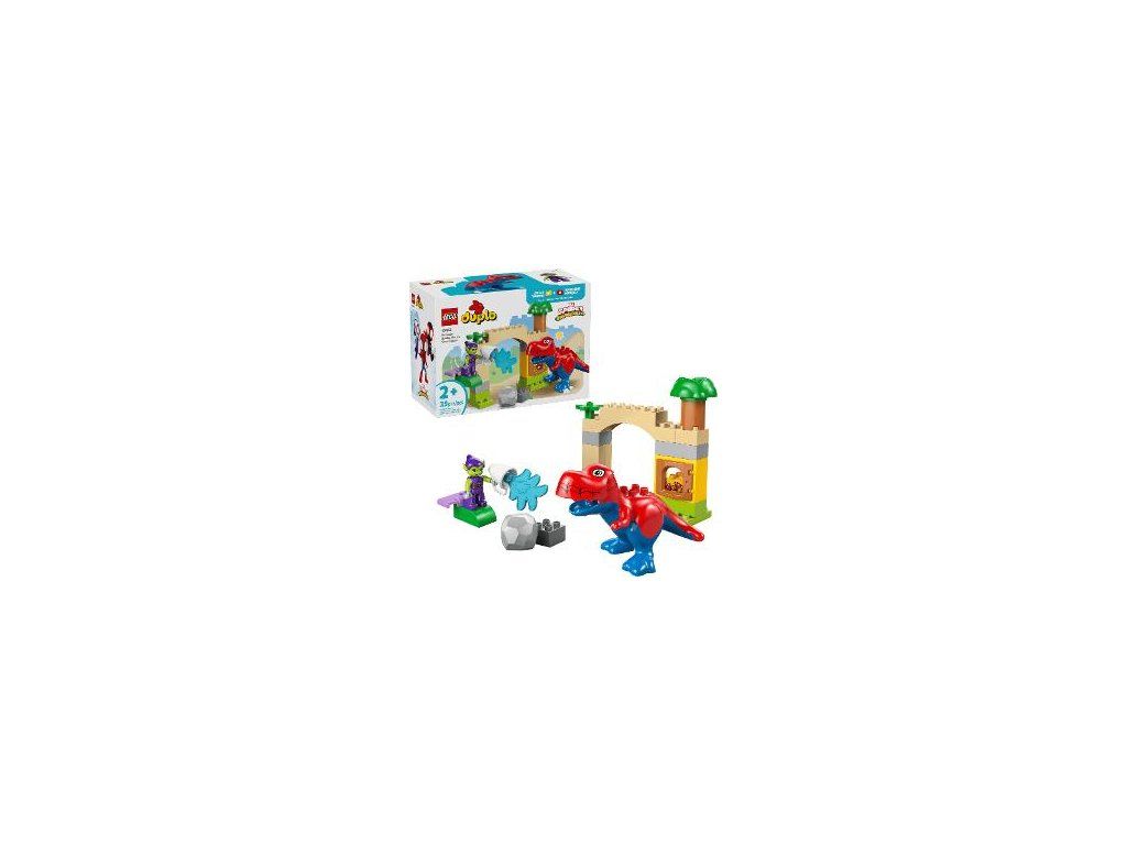 V stavebnici LEGO® DUPLO #Marvel inšpirovanej seriálom Spidey a jeho fantastickí priatelia sa dinosaurí superhrdina vrhne do akcie, aby ochránil poklad pred Zeleným Goblinom