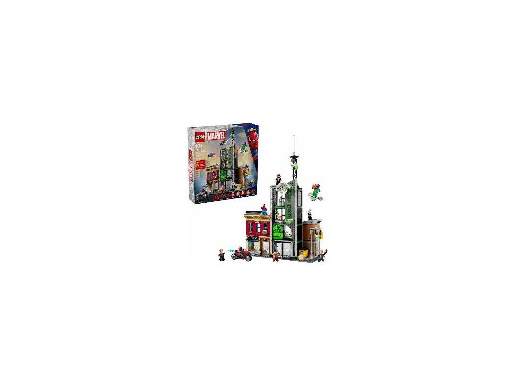 Stavebnica obsahuje 8 minifigúrok LEGO®: Spider-Mana, Spider-Woman, Milesa Moralesa, Eddieho Brocka, Ghost-Spidera, Normana Osborna, Lovca Kravena a Zeleného Goblina