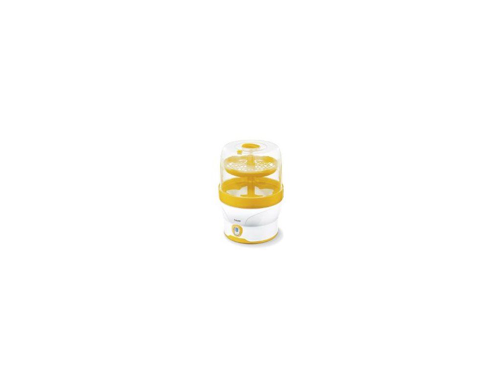 Sterilizátor. Pomocou tohoto prístroja môžete horúcou parou sterilizovať príslušenstvo, ktoré používate ku kŕmeniu svojho dieťaťa, a tiež menšie hračky, pri kterých výrobca uvádza možnosť vyvarenia. Prístroj je vhodný pre všetky obvyklé kojenecké fľaše.Prístroj má následujúce funkcie: sterilizácioa po dobu 7 minút, zachovanie sterility predmetov v neotvorenej nádobe až 3 hodiny, digitálny parný sterilizátor, rychlý a vysoko efektívny, LED displej zobrazuje zostávajúci čas, dezinfikuje až 6 fliaš + príslušenstvo za 7 minút, obsah zostává sterilný po dobu 3 h, pokiaľ vrchnák ostane zavretý, odstránenie všetkých škodlivých baktérií, bez chemických prísad, optický a akustický signál, vyberateľná mriežka na fľaše, kliešte, odmerka, automatické vypnutieDodatočné parametre