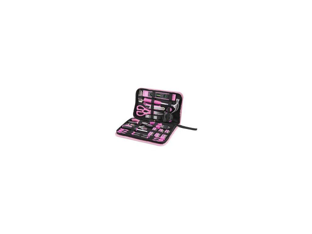 Štýlová ružová brašna FIELDMANN v seba ukrýva 71 dielnu sadu nástrojov, ktorá bude hodiť každémučlenovi domácnosti nielen v rodinnej dielni, ale aj na záhrade. Sada obsahuje skrutkovače, bity, kladivo,