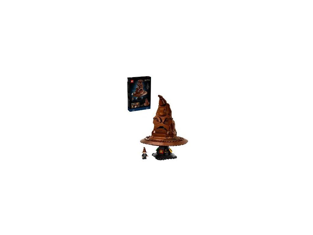 Súčasťou je podstavec na vystavenie a minifigúrka Harryho Pottera s Múdrym klobúkom