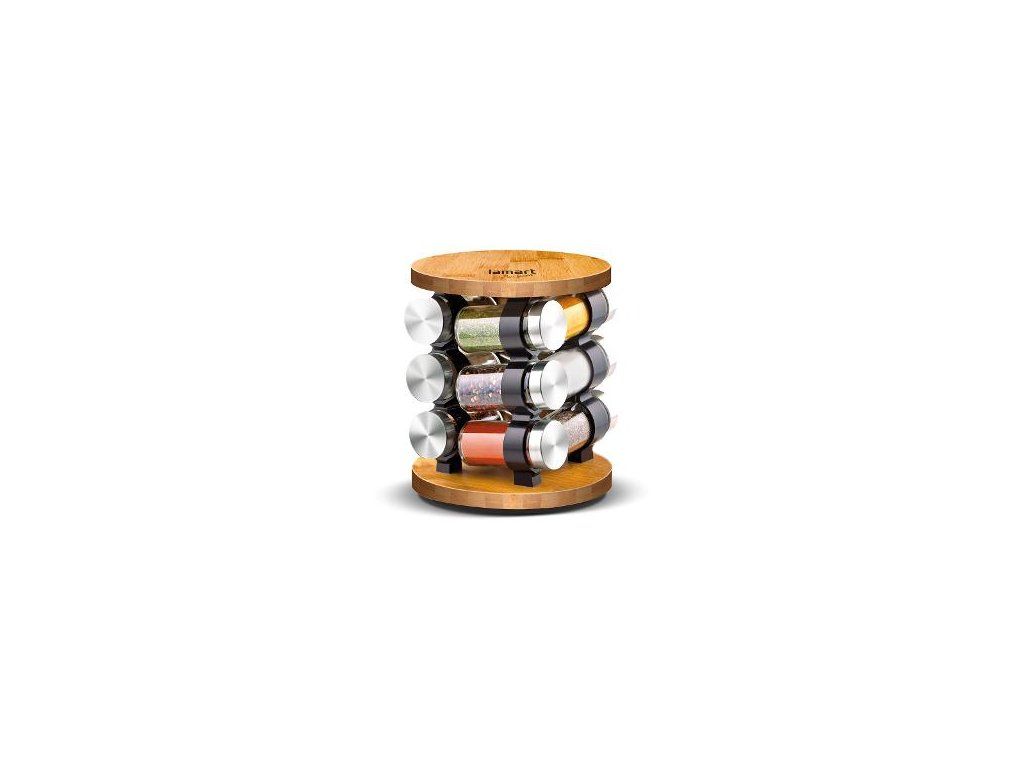 Sada koreničiek na otočnom bambusovom stojane v modernom dizajne, koreničky vyrobené z odolného skla vhodné aj do umývačky na riad bez viečka,materiál: drevo, nerez, sklo, farba: číra, objem: korenička: 85 ml, rozmery: 19x19x22,5 cm, korenička priemer: 4 cm, výška 9,3 cm. SÚPRAVA KORENIČIEK NA OTOČNOM BAMBUSOVOM STOJANE V MODERNOM DIZAJNE. KORENIČKY BEZ VIEČKA VYROBENÉ Z ODOLNÉHO SKLA VHODNÉ AJ DO UMÝVAČKY NA RIAD.