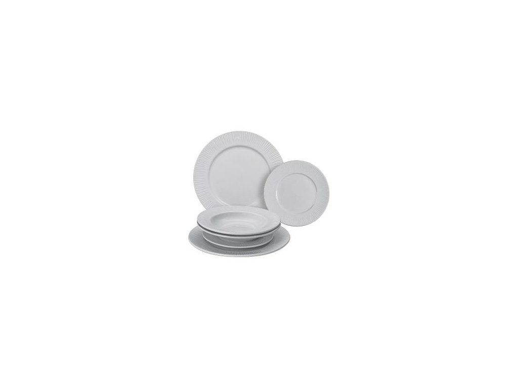 Porcelánová sada tanierov na každodenné použitie.Sada jedálenských tanierov obsahuje 2x plytký tanier, 2x hlboký tanier a 2x dezertný tanier.
