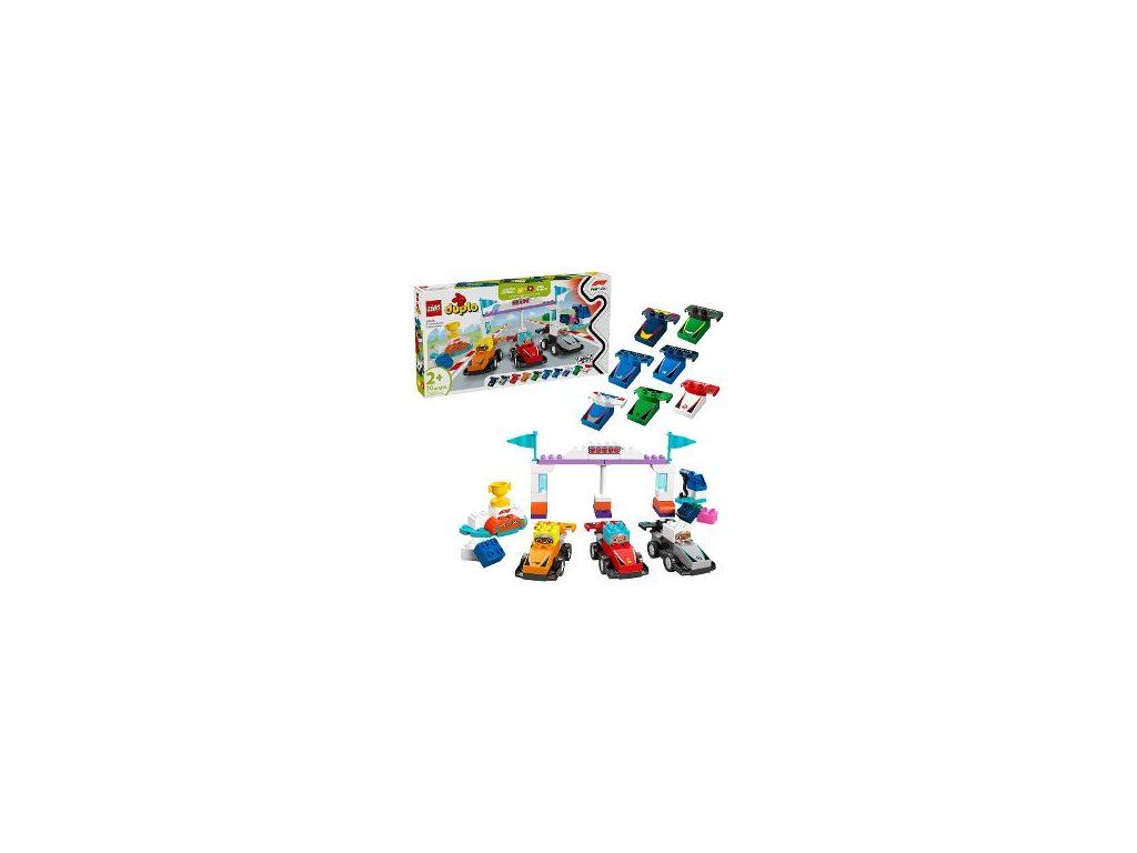 Podeľte sa o svoju lásku k F1 so svojou ratolesťou, stavebnica obsahuje 10 zostaviteľných závodných áut, 3 kocky s vodičom, žeriav, svetlá na štarte a stupne víťazov