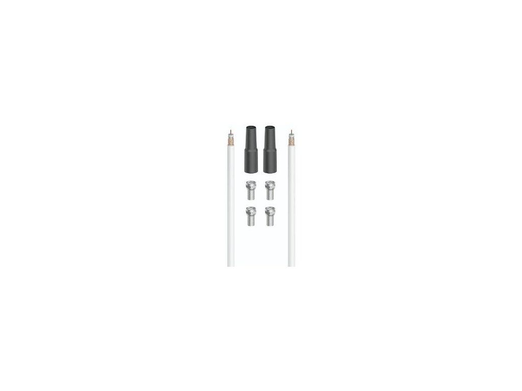 Súčasťou balenia: koaxiálny kábel, 2x ochranný návlek na konektor, 4x F-konektor
