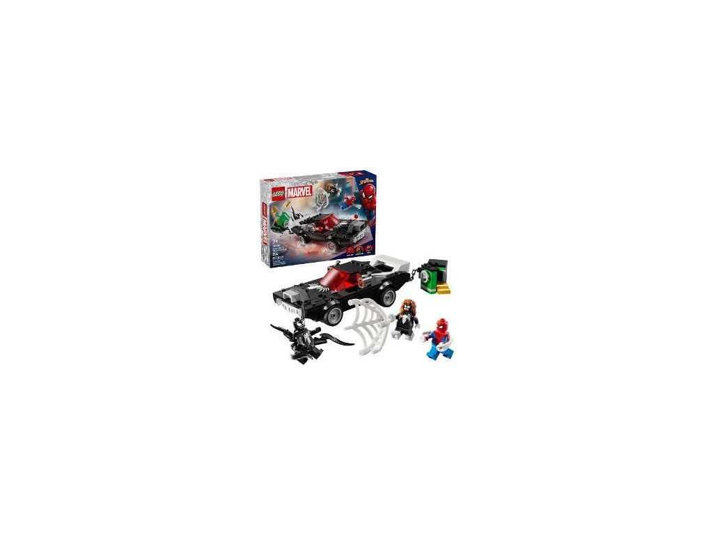Stavebnica obsahuje 3 minifigúrky LEGO® Marvel: Spider-Mana s vystreľovačom pavučín, Venoma so 4 chápadlami a Spider-Woman (Juliu Carpenterovou) s veľkou pružnou pavučinou